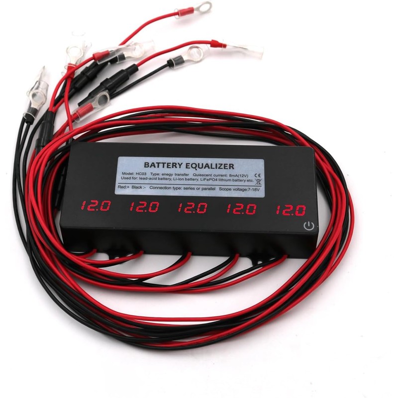 ANGUI HC03 Battery Equalizer 5PCS 12V 60V Batteries DC Inverter 10A Current Active Voltage Balancer Li li-ion Lead Acid Battery Connect LED Display (5 X 12V)