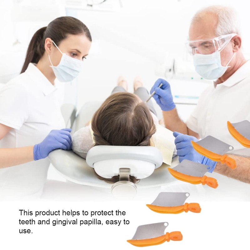 - Consists of a plastic wedge with holes and a stainless steel blade embedded in the plastic wedge, which placed during dental preparation can effectively protect the adjacent teeth from damaging the gingival papillae.ion process.