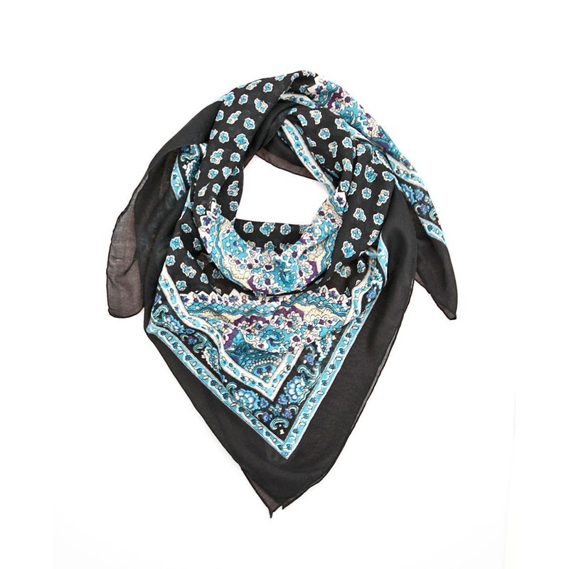 Anika Dali Women's Delicate Boho Black & Blue Floral Bandana Square Neck Scarf