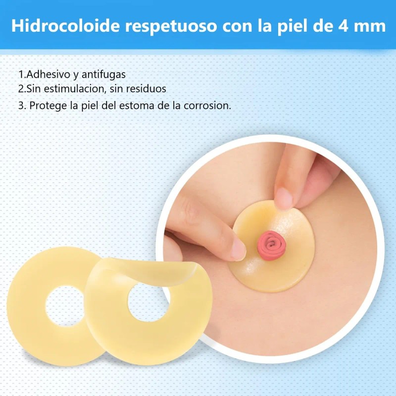 Respetuoso con la piel:Compuesto de hidrocoloide médico, el anillo hidrocoloide tiene una fuerte adhesión y es fácil de quitar sin picazón, lo que previene eficazmente el daño a la piel alrededor del estoma por los excrementos. Agradable para la piel y no irritante, evitando eficazmente que los excrementos dañen la piel alrededor del estoma.