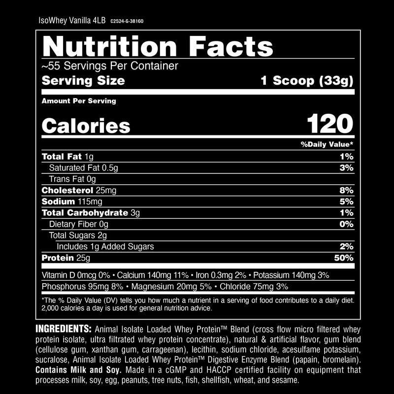 - Premium Whey Protein Isolate - Loaded with the highest quality protein sources, Animal Whey delivers a potent punch of 25 grams of protein per serving. Fast absorbing & high bioavailability to support muscle growth and recovery