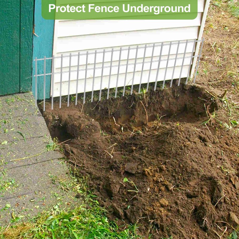 Animal Barrier Fence 10Pack, 24x15in Underground Protect Panels for Garden Deck Bottom Fencing and Outdoor Plant Bed Border Lawns - Stainless Design