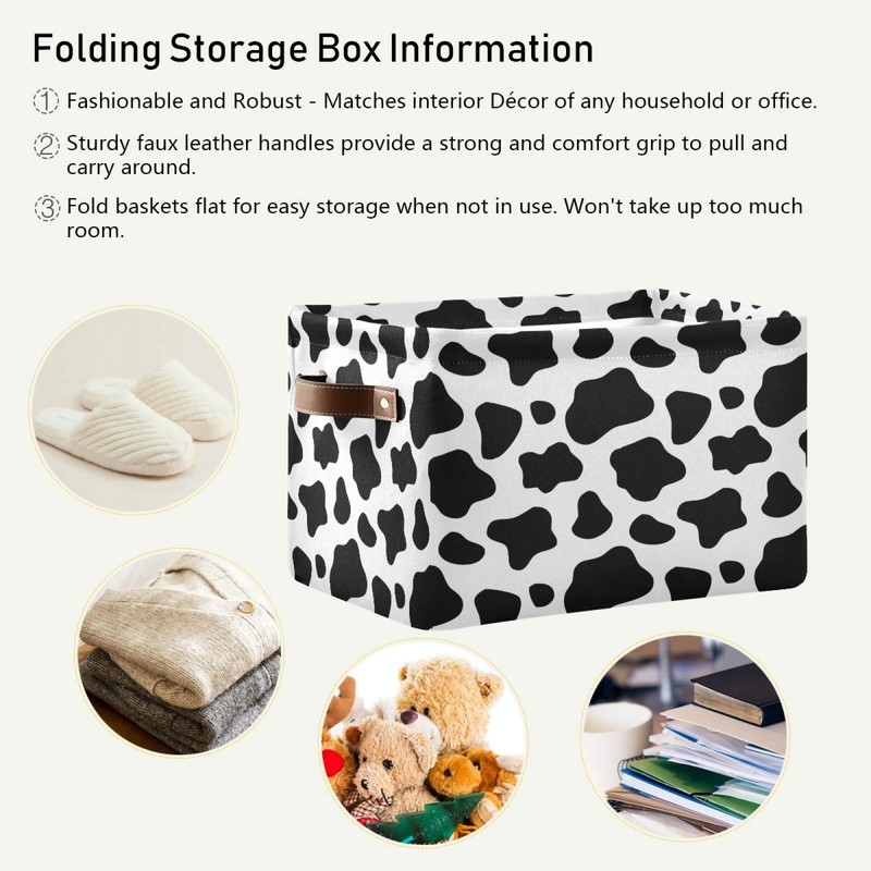 Animal Cow Print Square Storage Basket Bin Canvas Fabric Compressible Organizer Basket with Handle for Bedroom Nursery Office, 1PCS