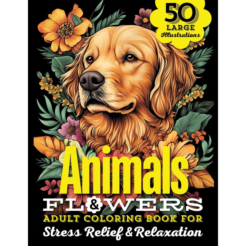 Animals & Flowers Adult Coloring Book: 50 Large Print Illustrations of Wild and Domestic Creatures, Fun Facts, and Beautiful Blooming Florals For ... Flowers with Animals, Dogs, Cats and Birds!)