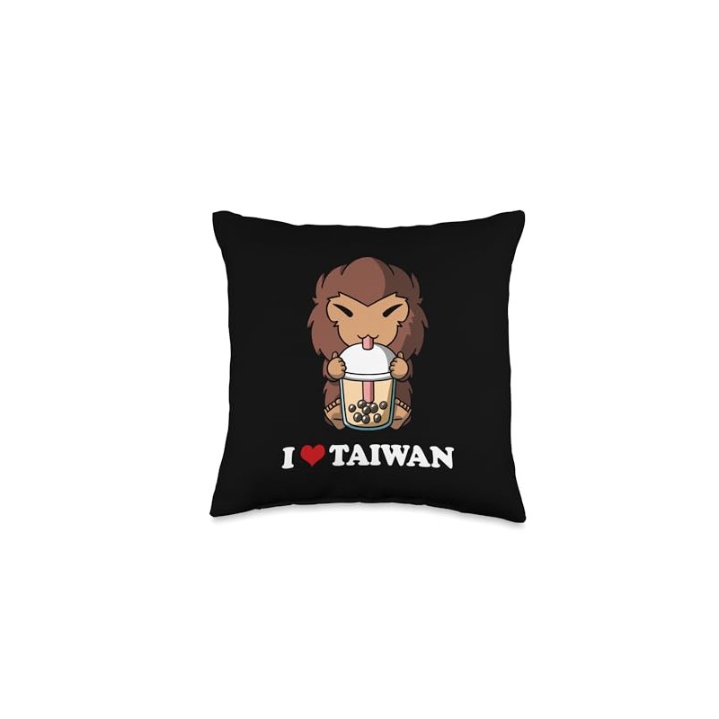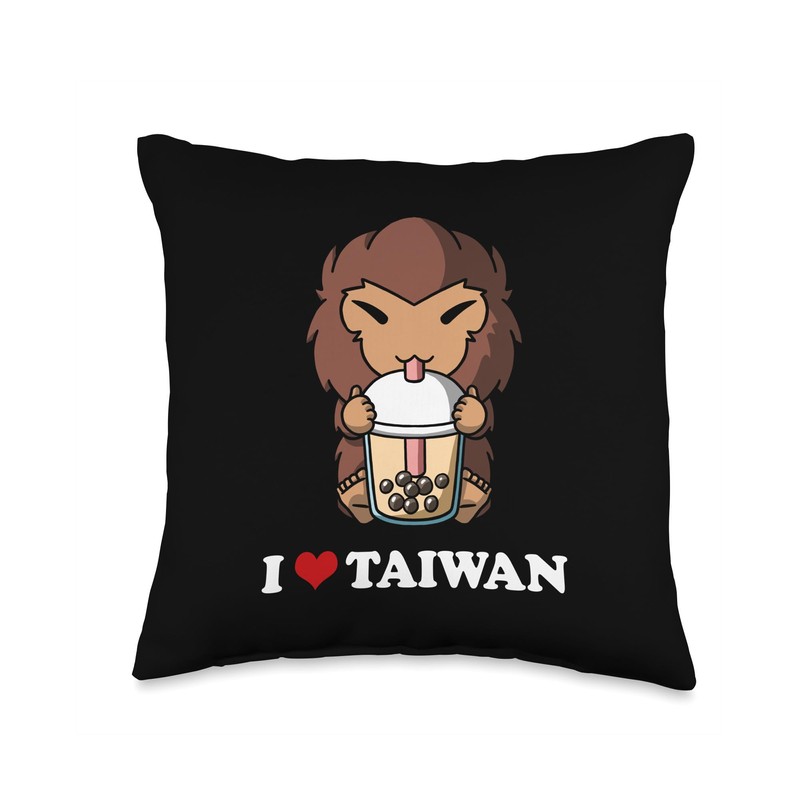 Anime Bigfoot Sasquatch Bubble Tea I Love Taiwan Throw Pillow