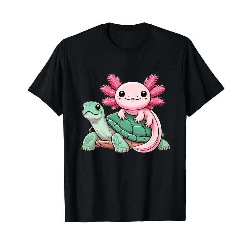 - This design has a cute kawaii axolotl sitting on a turtle. Great for an animal lover who likes Mexican Salamanders and reptiles like turtles or tortoises.