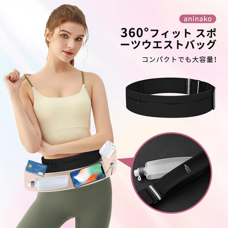 aninako ランニング ポーチ 揺れない (ピンク, M)