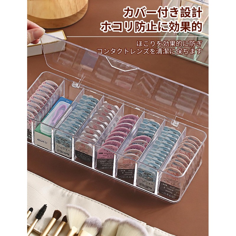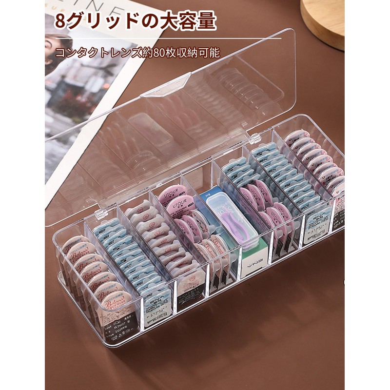 - 【LARGE CAPACITY & ORGANIZED】Aninako Contact Storage Case - Perfect for contact storage, acrylic box with dividers. This contact storage case comes with a lid to help you organize your disposable contact lenses, cosmetics, accessories and more. 8 compartments for easy organization by diopters and types. Large capacity holds about 10 average size disposable contacts per row, 80 total Size is 5.5mm(H) x 9mm(W) x 26cm(L) x 240g