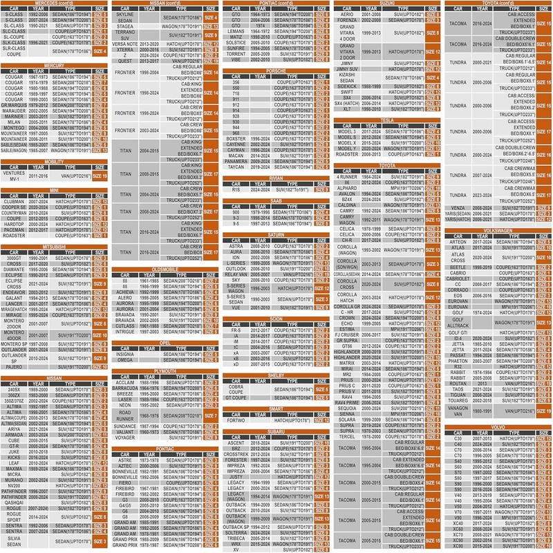 - Vehicle Dimension- Fit for all SUV which length is Up To 182".Find your Car length in left picture and more Car size in below detailed chart.This is small SUV covers waterproof 2 door Car covers for SUV and typical sample Car refer to wrangler cover.Anitant Compatible for Car cover Audi Q2 Q3 Q4 bmw X1 X2 2 Series Tourer Honda Element HR-V Hyundai Tucson/Kona XC40 Buick Encore Compass Liberty Renegade Wrangler 2Door TJ CJ Kia Niro Seltos Soul Sportage Subaru Crosstrek Forester etc.