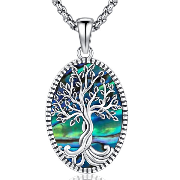 Aniu Tree of Life Necklace for Women Men Sterling Silver Celtic Tree Necklace Abalone Shell Celtic Family Tree Necklace for Mom Daughter Birthday Anniversary Christmas Jewelry