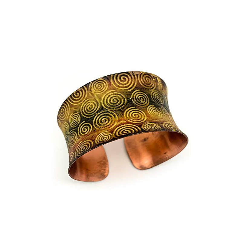 - Adjustable Copper Patina Embossed Cuff Bracelet Handcrafted by Artisans