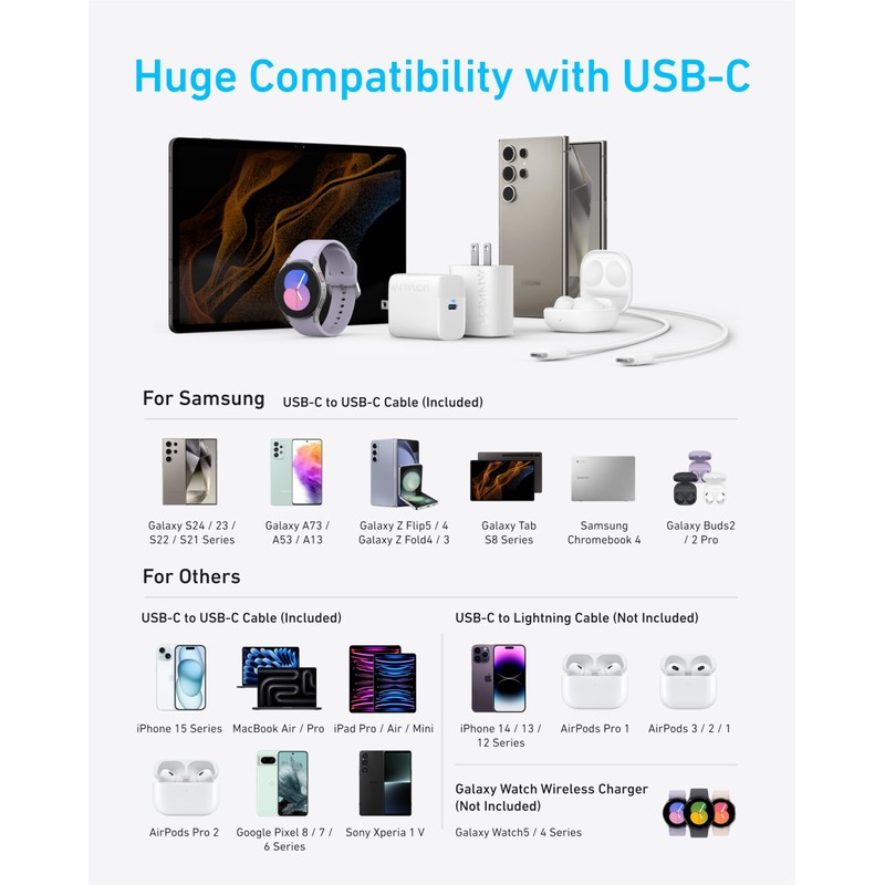 - Universally Compatible USB-C Charger: Embrace the convenience of this versatile USB-C charger, compatible with a broad range of Samsung and other USB-C devices.