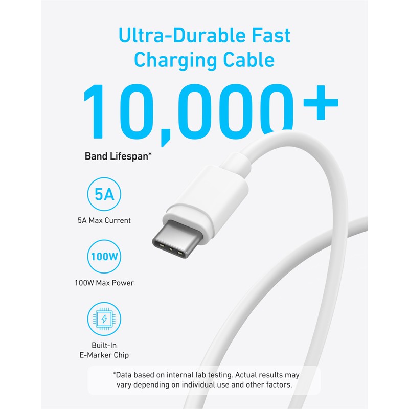 - Dual Long-Lasting Cables: Included with the charger are two 5 ft USB-C cables, boasting over 10,000 bend resistance and capable of handling up to 100W power for fast charging.