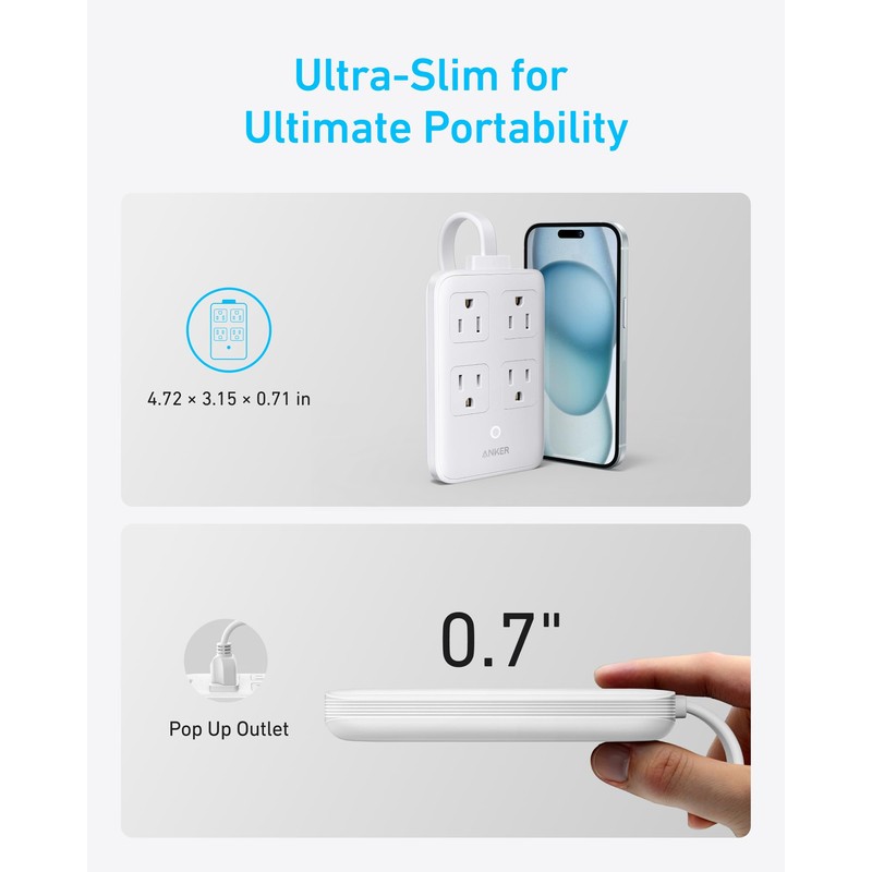Anker Anker Charging Station, 20W Max 8-in-1 USB-C Power Strip for iPhone 15/14 and MacBook Air/Pro, 5 ft Thin Cord with 4 AC, 2 USB-A, and 2 USB-C Ports, Fast Charging Desktop Charger for Travel, Office