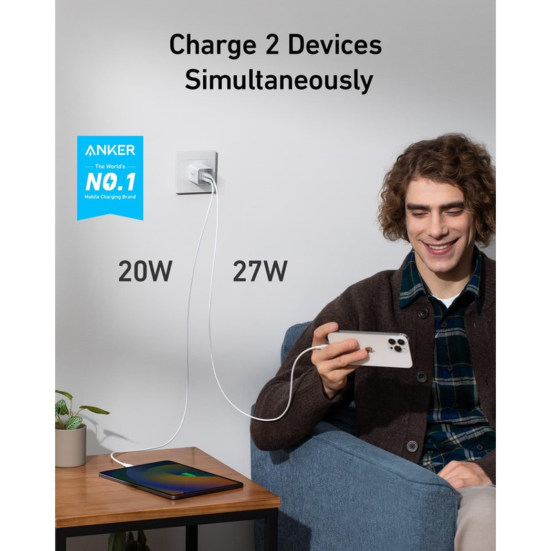 - Charge 2 Devices at Once: With 27W from one USB-C port, and 20W from the other, you can fast charge your iPhone and your iPad at the same time.