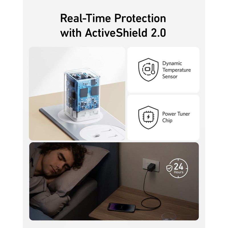 - Advanced Safety with ActiveShield 2.0: Anker's proprietary technology intelligently monitors temperature over 3 million times per day, providing twice the protection of ActiveShield 1.0 and ensuring the longevity of your devices.