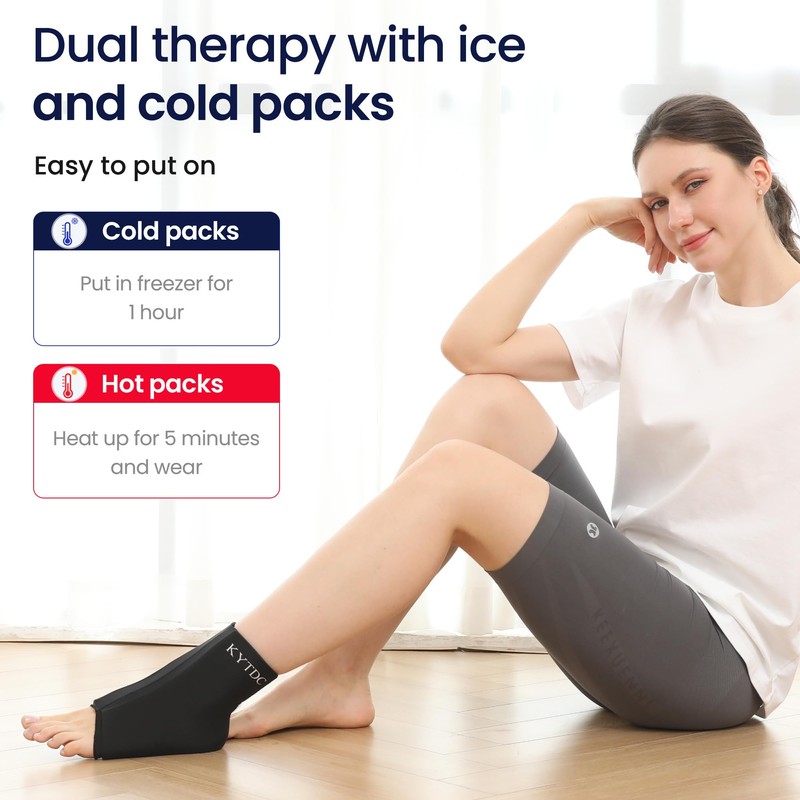 - Discover the relief this stretchable, single-piece, form-fitting, reusable cold ankle wrap provides. It's the perfect fit for everyone and can be comfortably worn on either ankle. This ankle ice pack wrap can also serve as a cold therapy sock, relieving discomfort from plantar fasciitis. It is an effective foot ice pack for post-workout recovery and an excellent ice pack for foot and ankle related ailments.