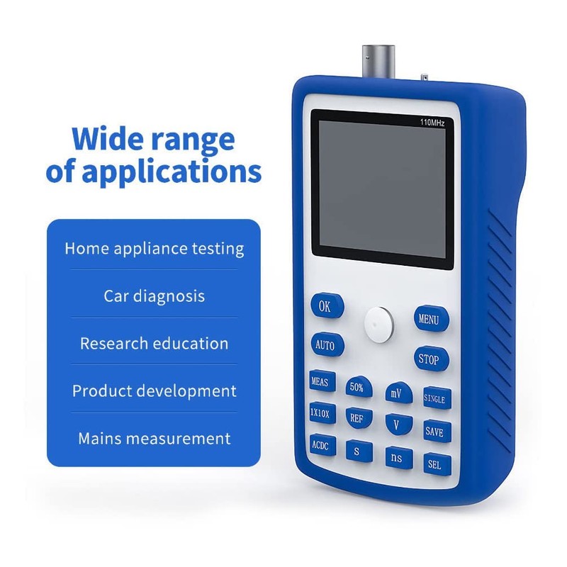 - 1C15 is a fully functional, practical and cost-effective handheld oscilloscope newly launched . The real-time sampling rate is 500M, and the analog bandwidth is 110MHz. In addition to all the functions of a conventional handheld oscilloscope, we also added a one-key quick auto function on this basis, so you can easily grasp the waveform like a desktop computer.