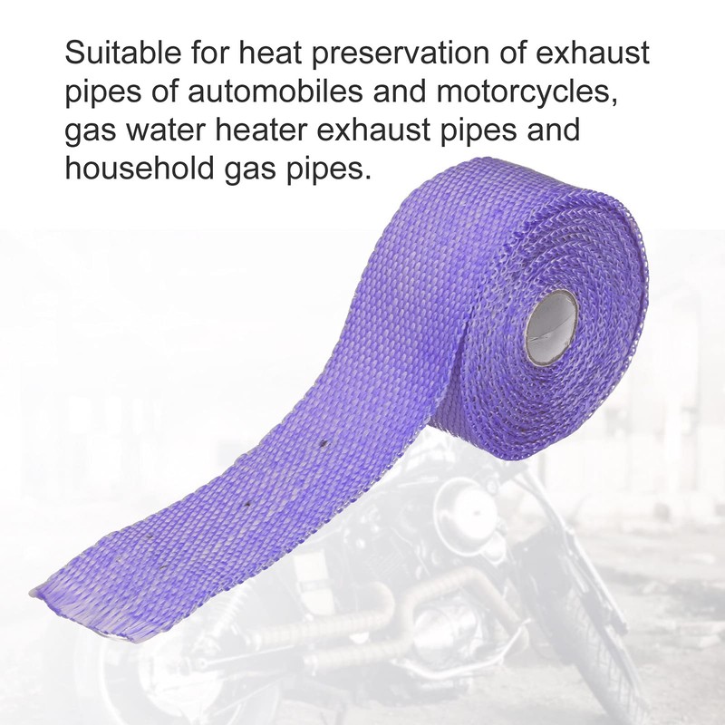 ANKROYU 196.9 x 2.0 x 0.1 in Exhaust Heat Wrap, Abrasion Resistant Glass Fiber Exhaust Header Wrap, Exhaust Heat Sleeve for Automobiles Exhaust Pipes (Lila)