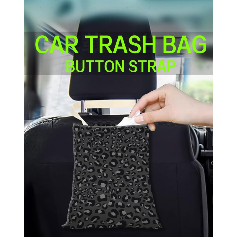 ANKVRP Car Trash Can, Durable Hanging Car Trash Garbage Bag, Cute Automotive Garbage Cans Organizer, Black Leopard Skin