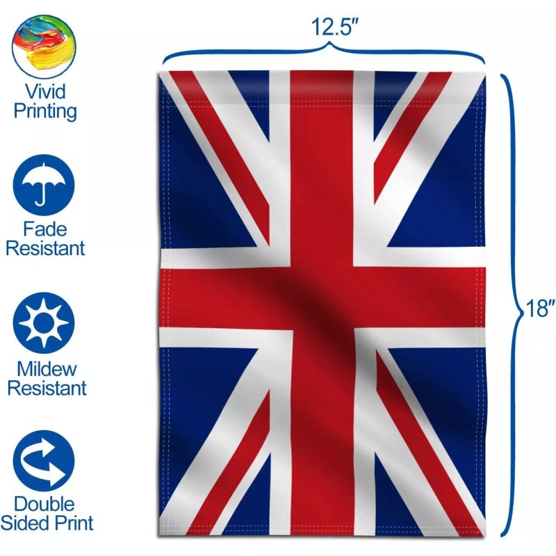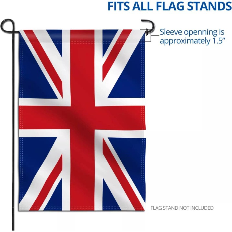 - SPECIFICATIONS - Made of 100% Polyester. Package contains one 18 X 12.5 inches ANLEY Union Jack British UK Garden Flag, with 2 inch wide sleeve. Flag pole NOT included.