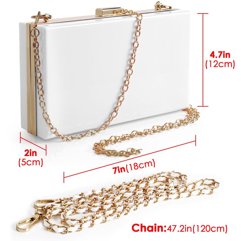 - Material: Acrylic, Product size: 7.1 in x 4.1 in x 2.2 in, The total length of the golden chain shoulder strap is 45.3 inches