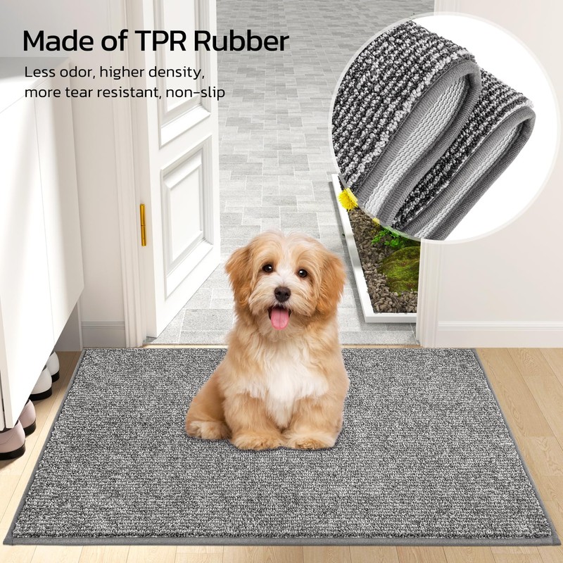 - [TPR Rubber & Non-Slip]: The non-slip TPR rubber backing provides a good grip and keeps the mat in place. The polyester washable doormats stand up to the weather and it catch dust and water more easily. This indoor rug can be used in many occasions, such as entrance, living room, bedroom, dining room and more.