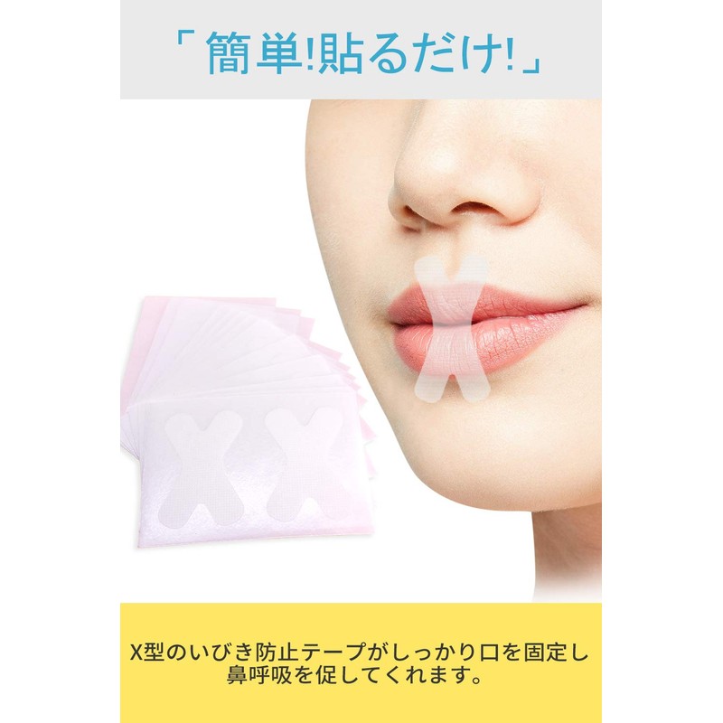 - X型デザイン・落ちにくい:縦型と比べて、X型デザインにより口との接触面積が増え、粘度の低下による製品の落下を効果的に防止できます。 Anloma 口呼吸防止テープは半透明素材なので屋外で使用しても目立ちません。
