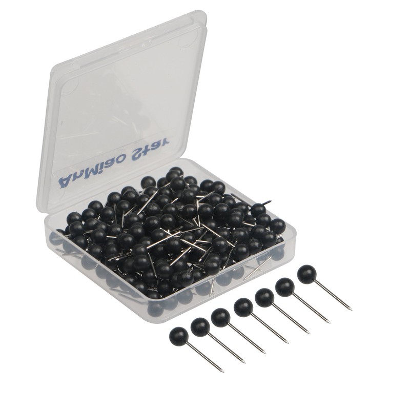 AnMiao Star 1/8 Inch Map Tracks, Push Pins Plastic Round Head, Steel Point, Black Colors, 100-Count