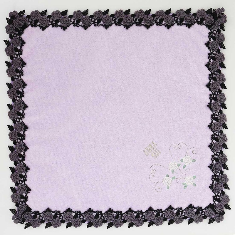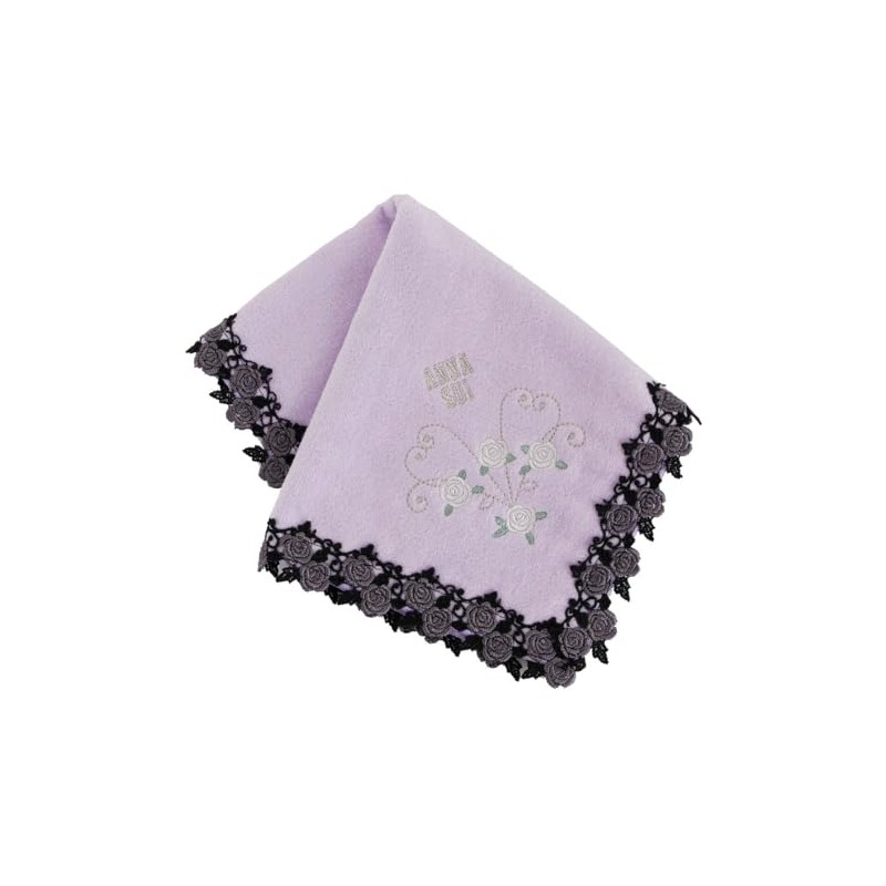 ANNA SUI 109109-0001-01 Large Towel Handkerchief, Rose Lace (Purple) [100% Cotton] Women's Hand Towel, Approx. 11.0 inches (28 cm), Anna Sui, purple