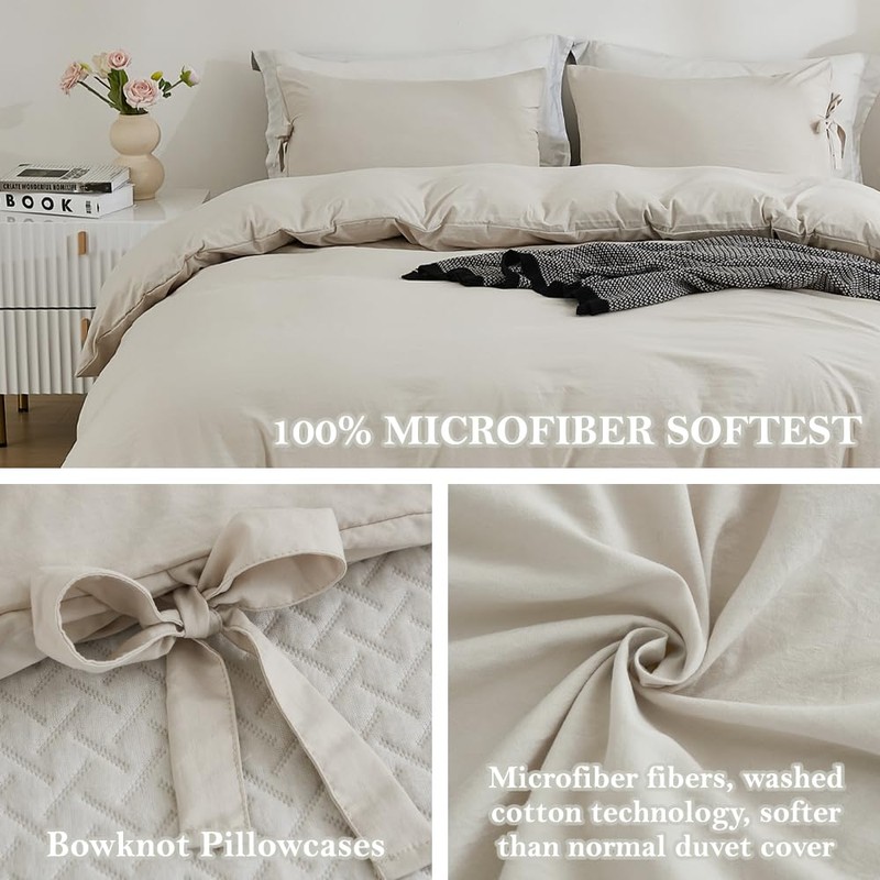annadaif Duvet Cover King Beige (104x90 Inch), 3 Pieces (1 Duvet Cover, 2 Pillowcases) Soft Washed Microfiber Bow tie Bowknot Duvet Cover Set, Easy Care Bedding Set for Men, Women