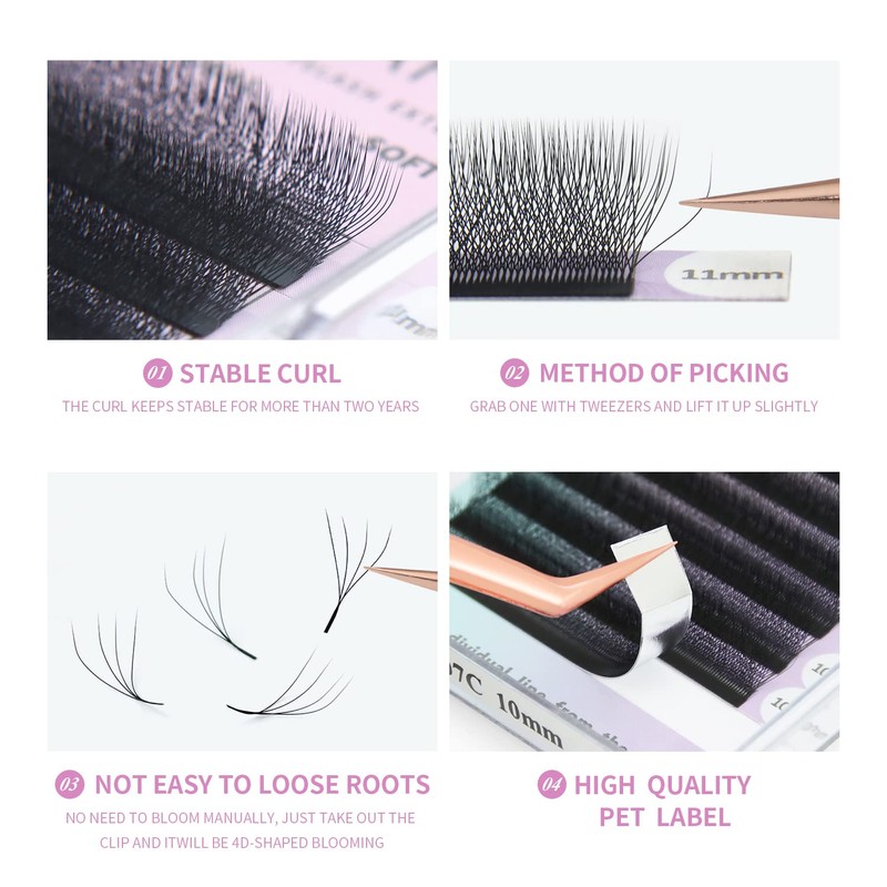 - ❤Premade Fan:4D W Shape Eyelash Extension.It has 4 extensions bonded together which is very simple to create fans when grabbing with tweezers. Get a 4D long stem cluster instantly.The special W-shaped overlay design makes your eyelashes look thicker, fills the vacancy of natural eyelashes, and is more charming.