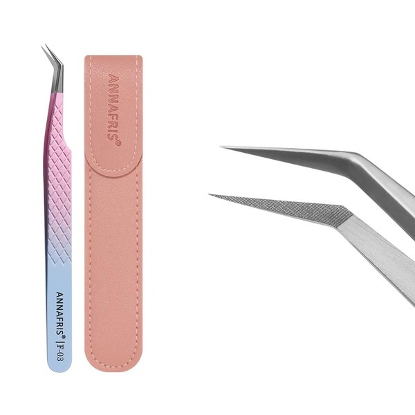 ANNAFRIS Lash Tweezers Stainless Steel Eyelash Extensions Tweezers Kit Straight and Curved Tweezers for Crafting Fiber Pointy Tweezers(F03)