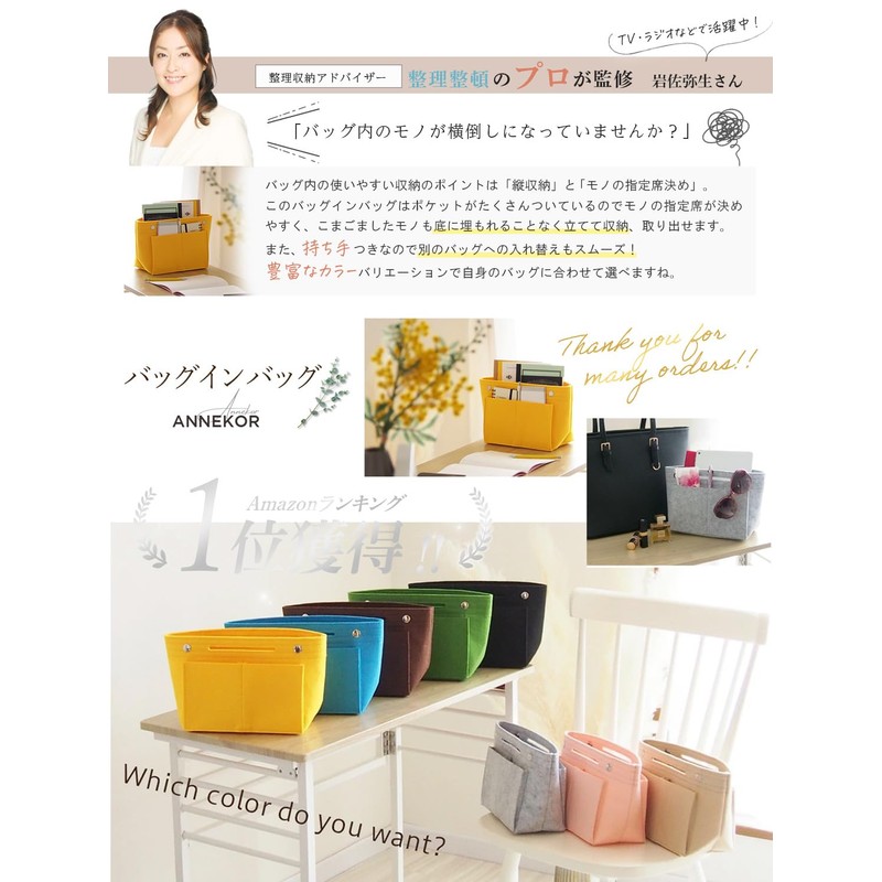 Annekor Bag-In Bag, Supervised by a Professional for Storage, [Delightful Bottom Plate and Pen Holder] Felt, Inner Bag, Lightweight, Pouch, Back-In Bag, Men's, Women's, Encore (Beige)
