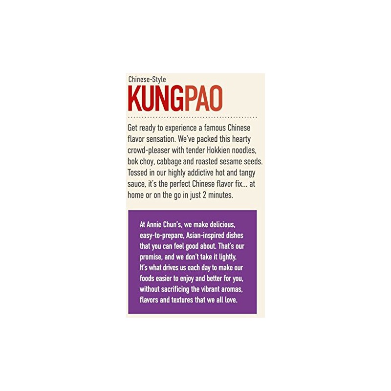 - Chinese-Style Kung Pao hot & tangy sauce combined with pre-cooked delicious Hokkien noodles, and bok choy, carrots, peanuts