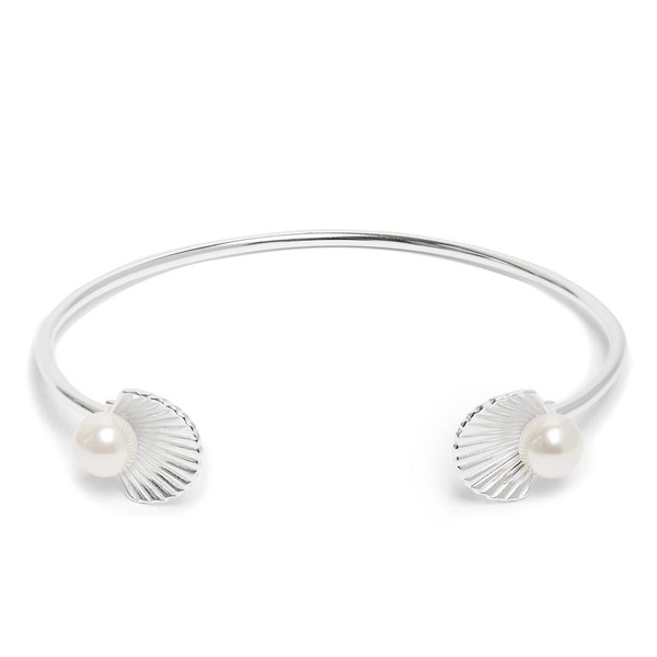 Annie Oak Womens 925 Silver Open Shell Bangle Bracelet