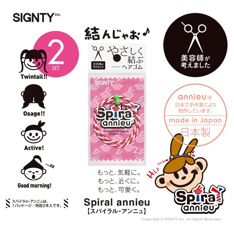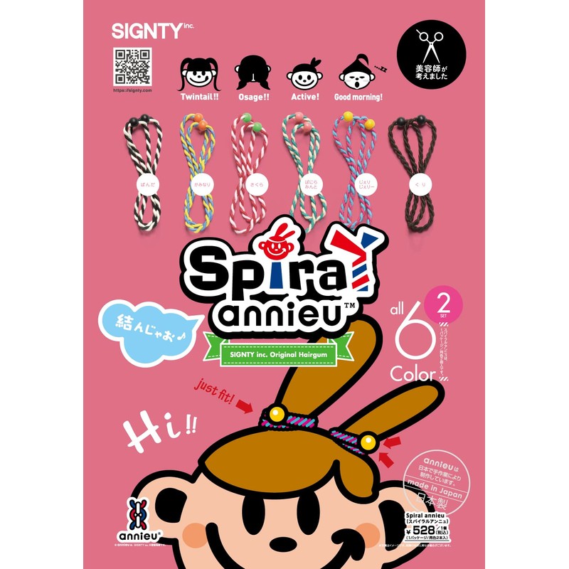 annieu Spiral Hair Elastics, Hair Accessory, Twin Tail, Designed by Beauticians, Sakura