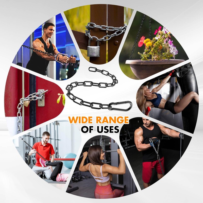 - Multi-Functionality:As an extension accessory for fitness equipment, the steel chain can be used for a variety of training programs, such as pull downs, curls, squats, hard pulls, bench presses, etc. It is suitable for use in strength racks, pulley systems, and weight lifting equipment, providing trainers with more diversified training choices. It can also be used for sandbags, locking gates or bicycles, fences and other