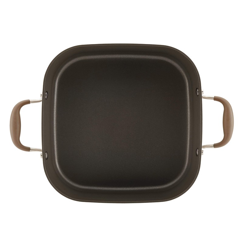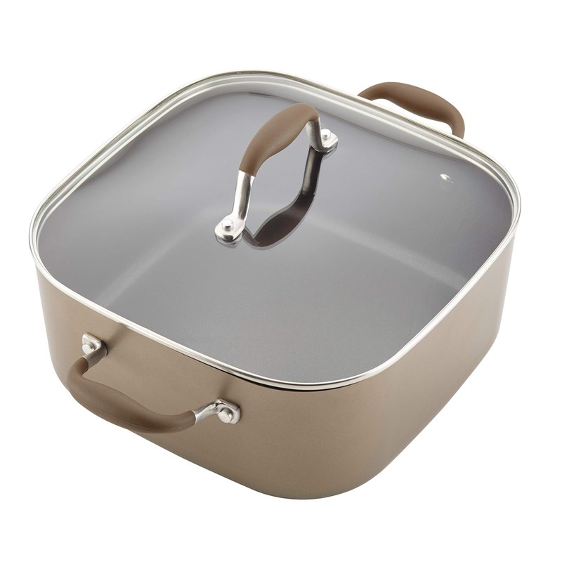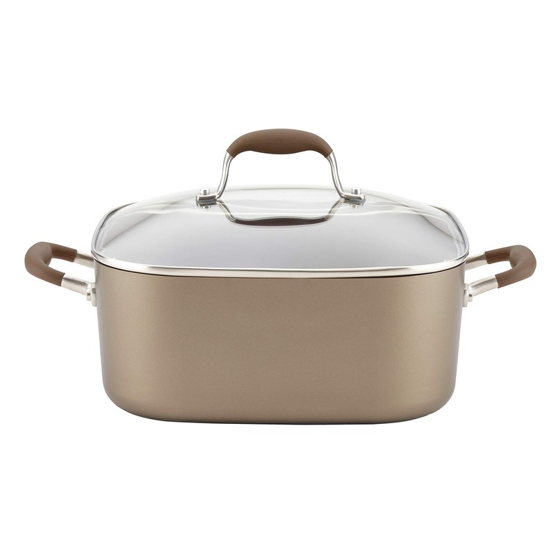 Improvise a whole new culinary story in your own creative way, with the Anolon Advanced Hard-Anodized Nonstick Square Dutch Oven. Designed for imaginative cooking, this versatile casserole pot is ideal for more than just casseroles. Savory sauces, rich pasta dishes and slow-cooked meats are all perfectly suited to this covered pot. Start on the stovetop with garden fresh garlic and herbs, then toss in grass-fed beef, broth and fingerling potatoes, add the lid and transfer straight into the oven. The heavy-duty hard-anodized construction promotes efficient, balanced heat distribution, and the square pan profile provides 27% more cooking surface for better searing and browning. The covered Dutch oven's metal-utensil-safe interior and exterior boast long-lasting premium-quality nonstick that delivers effortless food release and easy cleanup after entertaining. Revolutionary dual-riveted Anolon SureGrip(r) handles are comfortably, sturdily designed with rubber over durable stainless steel for a confident grasp when transferring from stovetop to oven to table, and the shatter-resistant glass lid seals in heat and moisture while foods cook. when compared to round, like-purpose vessels of the same diameter