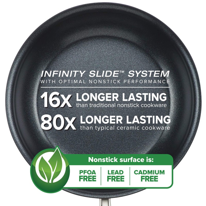 • OPTIMAL NONSTICK PERFORMANCE: Sapphire-reinforced Infinity Slide(tm) nonstick is PFOA-free and lasts 16X longer than traditional nonstick and 80X longer than typical ceramic cookware