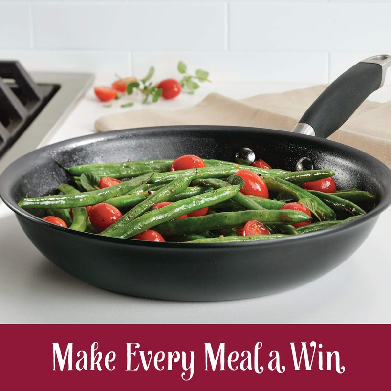 Create flavorful home-cooked meals with the Anolon Advanced Home Hard-Anodized 10.25-Inch Nonstick Skillet designed for creating a full range of recipes from fast and easy weeknight creations to the weekend menu everyone looks forward to. Anolon Advanced Home starts with the long lasting hard-anodized aluminum durability and even heating that Anolon is known for and adds the new Infinity Slide System for the best in nonstick performance and easy cleanup that will keep cooking and looking like new, even with daily use. A comfortable Anolon SureGrip handle provides a confident grasp, and the skillet is conveniently oven safe to 400°F. Designed for daily creativity, the Anolon Advanced Home Hard-Anodized Nonstick 10.25-Inch Skillet combines durability, performance, and convenience so every meal is a win.