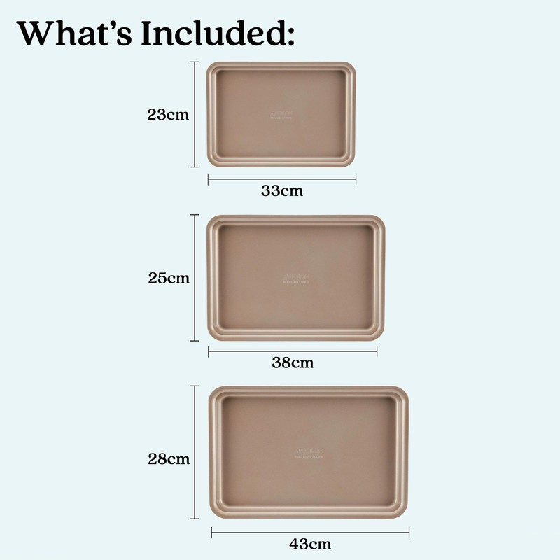 - SET INCLUDES: 9-Inch x 13-Inch Cookie Pan, 10-Inch x 15-Inch Cookie Pan, 11-Inch x 17-Inch Cookie Pan