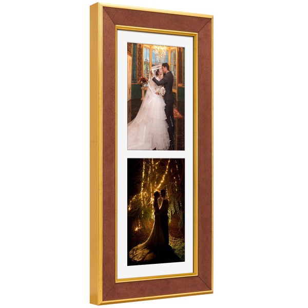 Anozie Suede 6x15 Picture Frame Display 2 Opening 5x7 Double Picture Frames Collage Wall Decor with Mat,Multi Photo Frame for Plexiglass,Wall Decor,1Pack,Brown
