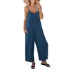 ANRABESS Overol holgado casual sin mangas con tirantes delgados ajustables para mujer, overol elástico de pierna ancha con dos bolsillos, Azul, S