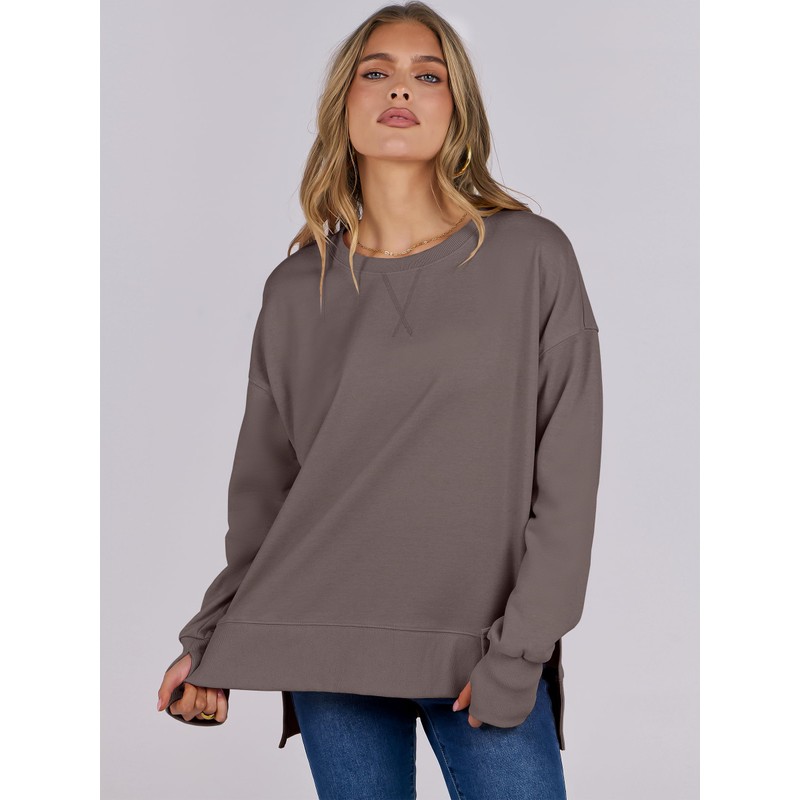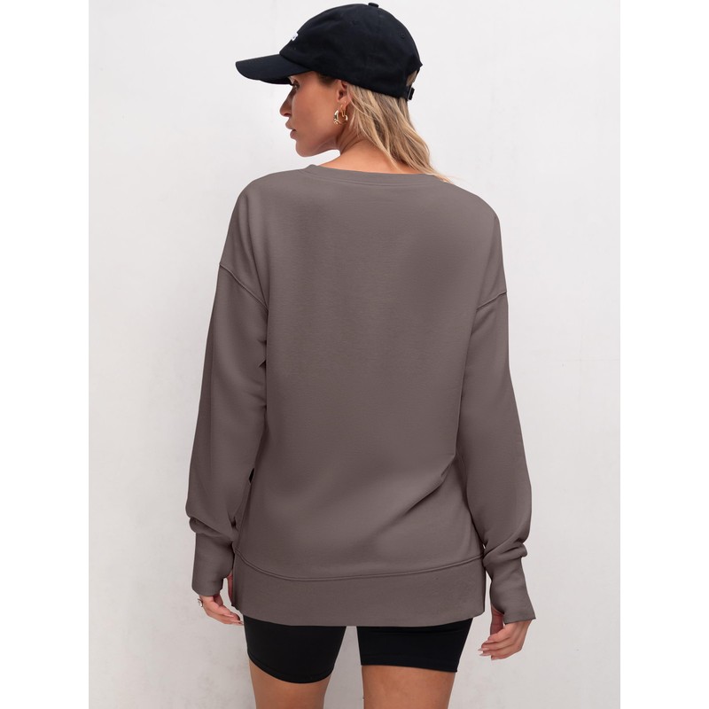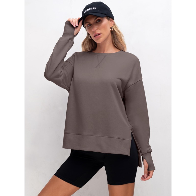 - Features - Elevate your casual style with our oversized sweatshirt featuring a unique side split hem. Perfectly paired with jeans, leggings, shorts, or a skirt, this versatile piece is suitable for everyday wear and exercise, as well as travel, running errands, vacations, or shopping