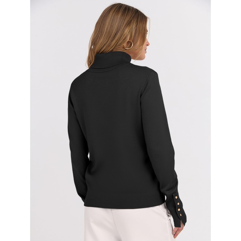 • Features - This knitted pullover features a turtleneck with simple solid colors. Ribbed trims at neck, cuffs, and hem add structure, while cuff buttons offer subtle detail. Perfect for fall/winter, it blends warmth and style for daily wear, café outings, office days, park walks, outdoor gatherings, and more—versatile and understated.