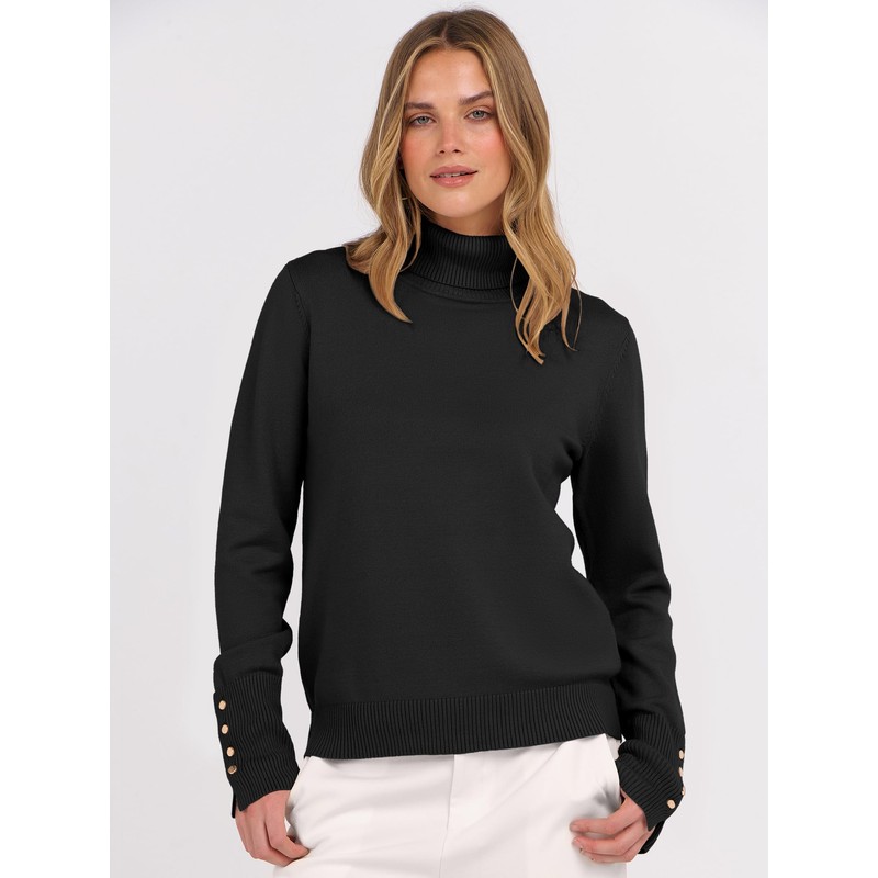 ANRABESS Turtleneck Sweaters for Women 2025 Fall Long Sleeve Dressy Casual Soft Knitted Button Basic Pullover Tops Outfits Black Medium