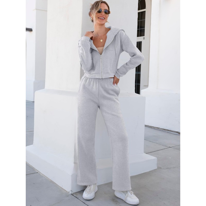- Style - This effortlessly stylish two-piece ensemble not only elevates your look but also pampers your skin and comfort with its luxuriously soft fabric. Featuring zippered hoodies that effortlessly complement other garments, the top and bottom can also be worn independently. Ideal for the winter, fall, and spring seasons.