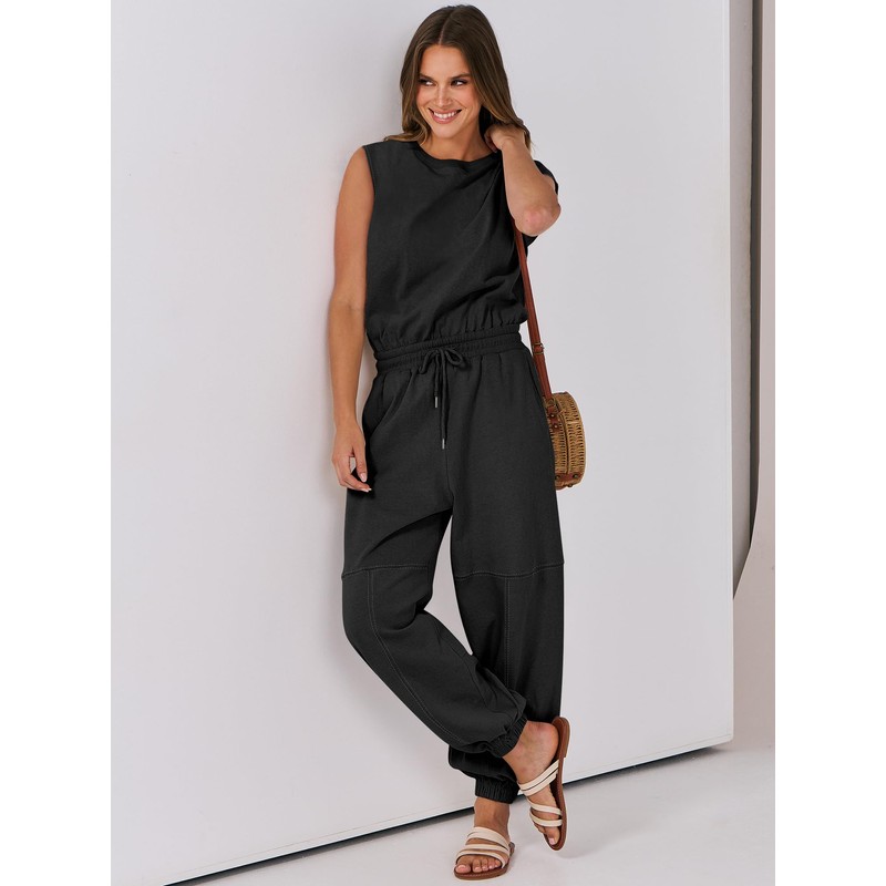 ANRABESS Women's Jumpsuits Summer Casual Sleeveless 2025 Romper One Piece Outfit Active Workout Lounge Jumpsuits Pockets Black Medium