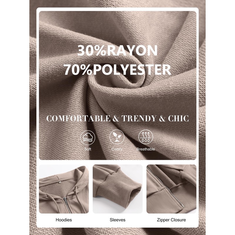 ANRABESS Women's Zip Up Hoodies Cropped Sweatshirts Full Zip Jackets 2024 Casual Fashion Fall Outfits Winter Clothes Khaki Small